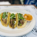 Marinated Brisket. Comes w/ a Fine Pico de Gallo & Red Chili Salsa on the Side